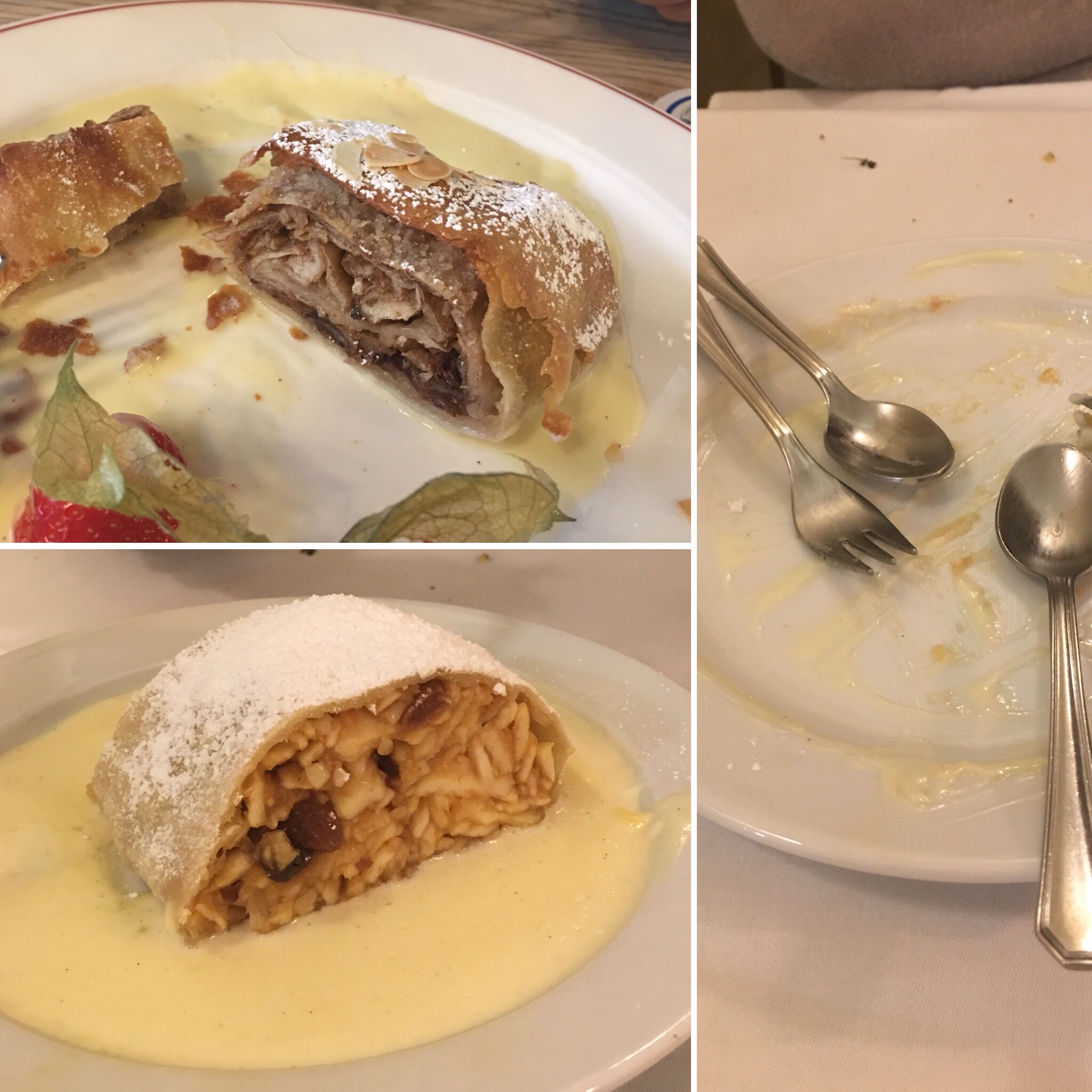 At the end of the day, as you can see from our final picture we thought both had a lot to offer. BTW we shared both dishes because we both knew, we had to weigh in later in the week and we don’t mean at the airport, we mean on the scales. As we considered our final recommendation we both agreed the Berlin has a long way to come for Appel Strudel and that if Mary Camilleri put her mind to making Strudel that hers would leave both these two German Strudel Hausas for dead.